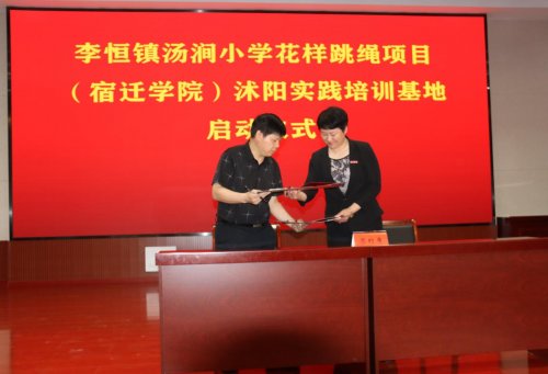6月22日上午,花样跳绳项目(宿迁学院)沭阳实践培训基地启动仪式在沭阳县的李恒镇汤涧中心小学举行。校党委常委、副校长潘志明,沭阳县副县长范以环先后致辞。启动仪式后,我校花样跳绳教练团队和汤涧中心小学的小朋友们进行花样跳绳表演。