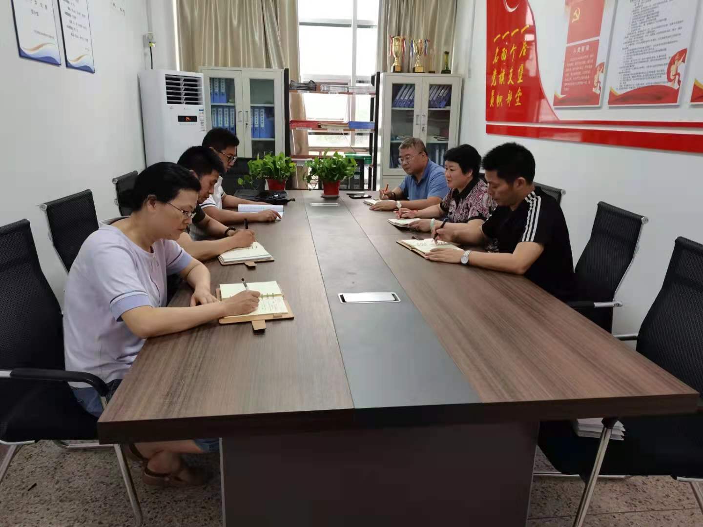 7月14日下午,体育部党政领导班子在大学生活动中心215会议室召开上半年工作总结和暑期迎评工作布置会。