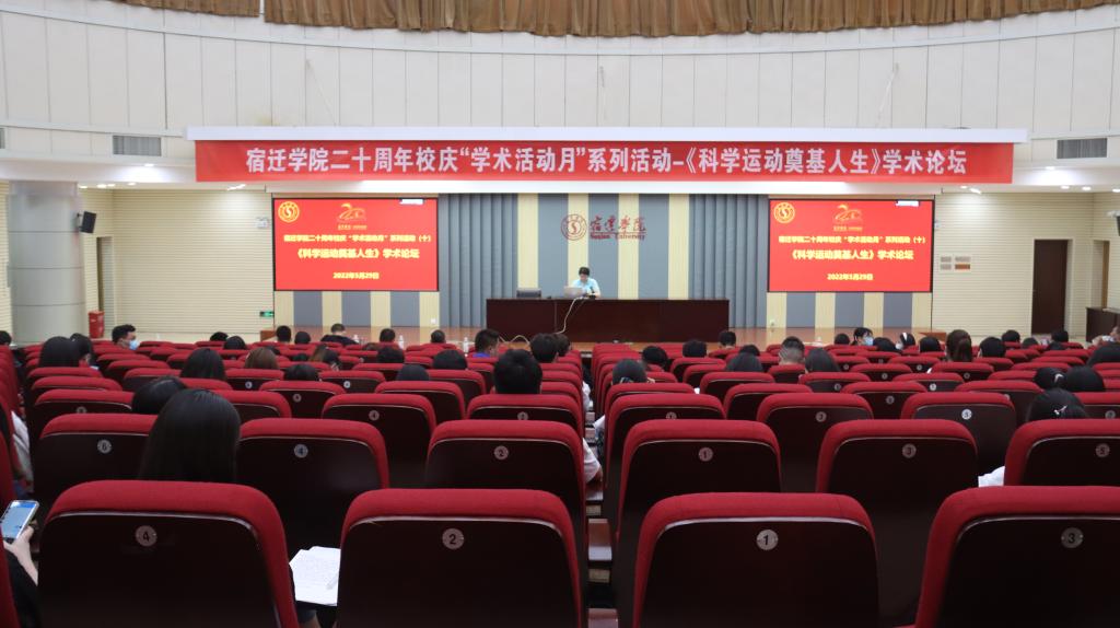 2022年5月29日下午2:30-18:00,宿迁学院二十周年校庆“学术活动月”《科学运动奠基人生》学术论坛,在新图书馆二楼报告厅成功举行,来自南京体育学院孙飙教授、南京师范大学体科院院长史曙生教授分别做了《学生身体活动、体质健康、学习成绩的关联跟踪研究与应用》《大学生体质健康促进工作的实施与展望》学术报告。活动由于华老师主持。