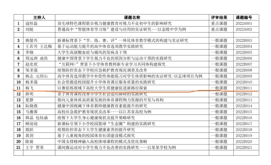 2022年度课题项目立项评审结果,体育部杨飞老师申报的《以赛促练视域下高校大学生质健康促进新路径探索》获批立项。