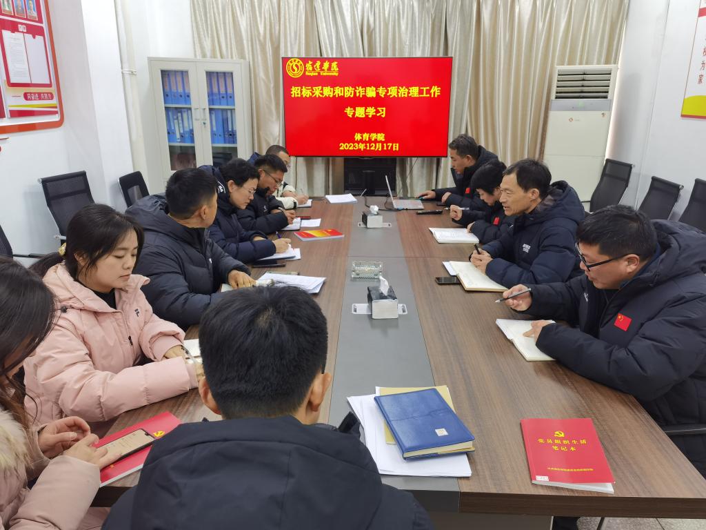 根据学校《关于在全校开展招标采购和防诈骗工作专项治理活动的通知》(宿党办〔2023〕18号)通知精神和学院招标采购和防诈骗专项治理工作安排,2023年12月17日下午,体育学院举行招标采购和防诈骗专项治理工作专题培训。