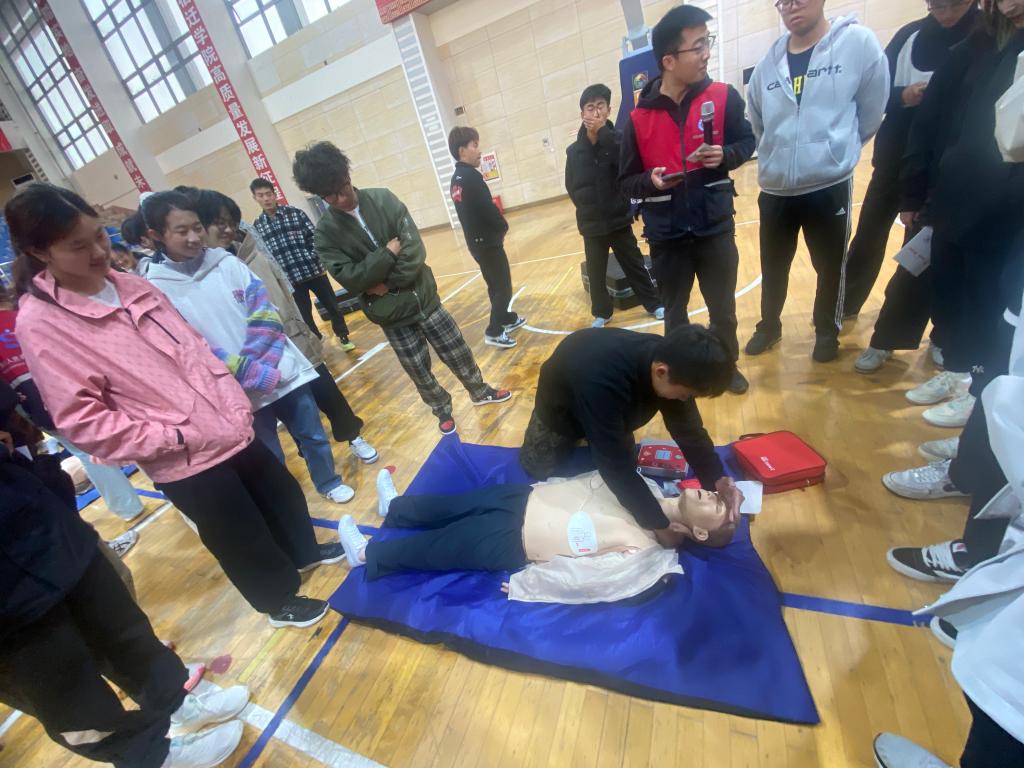 康复科专家苏主任为同学们深入浅出地讲解了急救的理论知识,包括心肺复苏(CPR)、止血包扎、骨折固定等急救技能,并结合人体模型进行现场实践操作演示。同学们亲自动手,在实际操作中加深对急救技能的掌握,以增强应对突发状况的能力。